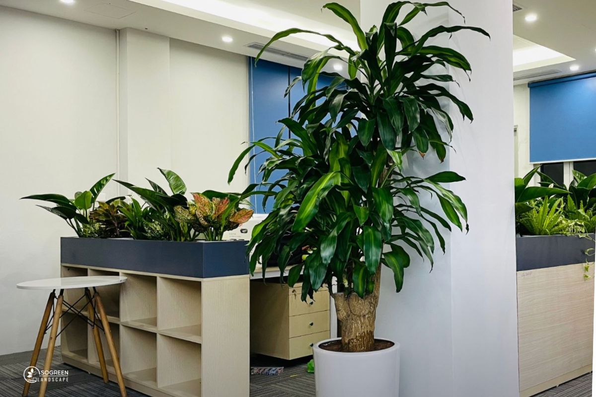 Giúp cải thiện môi trường làm việc, tăng tính thẩm mỹ và tạo cảm giác dễ chịu cho nhân viên. Cây xanh còn góp phần nâng cao hình ảnh thương hiệu trong mắt đối tác.
